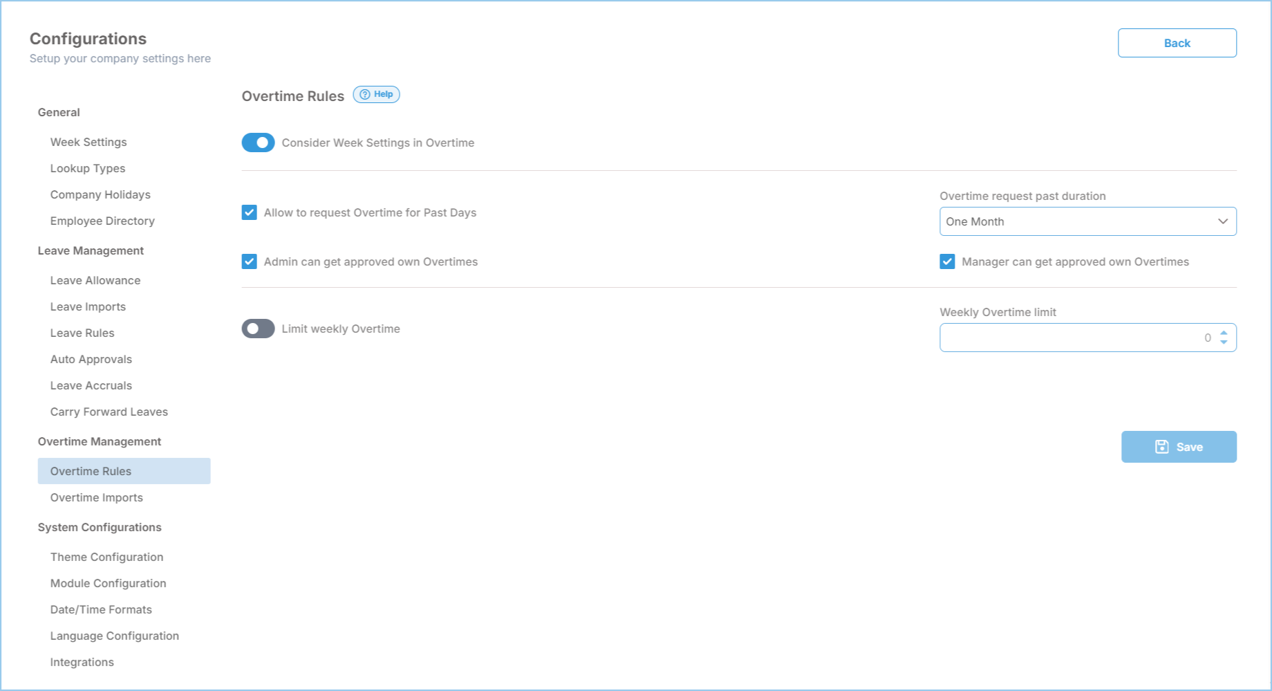 You can set the weekly limit for overtime hours using this option. To set your desired limit, turn on the toggle and choose the amount you prefer.